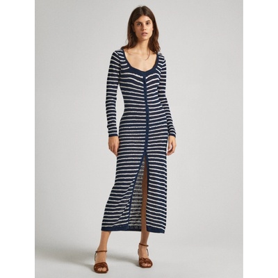 Dámské tmavě modré pruhované šaty od Pepe Jeans. Šaty jsou pletené a součástí je spodnička. Materiál: 93% bavlna, 7% len Střih: Slim Fit