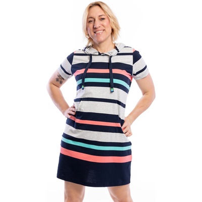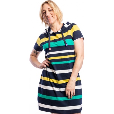 Hledáš pohodlné šaty vhodné pro běžné nošení? Pruhované šaty CASEY DARK s kapucí jsou pružné šaty sportovního střihu s klokankovou kapsou. Kapuce má šňůrky na stahování....