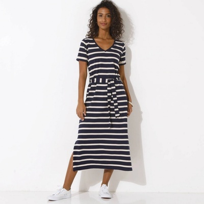 Šaty s pruhy z elastického příjemného úpletu pro pohodlné nošení. Zvolte si krátký, nebo 3/4 rukáv.