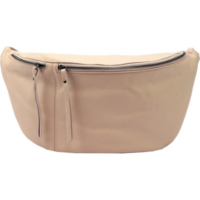 Dámská, pudrová kožená kabelka od českého výrobce, ručně vyrobená. Kabelka má dvě vnitřní sekce, jednu úzkou a druhou s jednou kapsičkou na zip a druhou otevřenou. Na zadní...