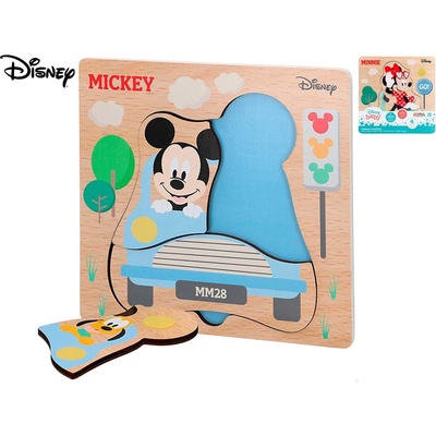 Dřevěné puzzle dřevěné s motivem Mickey Mouse obsahují 6 dílků. Rozměr: 22 x 20 cm Matriál: dřevo Baleno ve fólii.