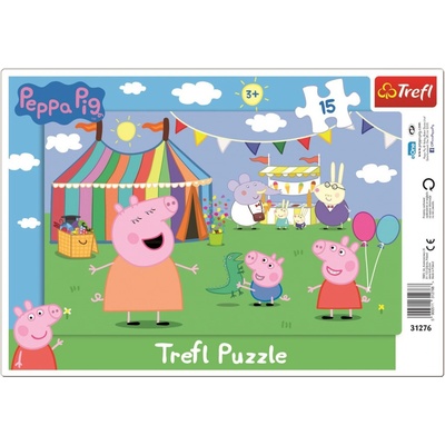 Puzzle deskové Prasátko Peppa V zábavním parku se skládá z 15 dílků. Puzzle je vyrobeno z tvrdého kartonu a zároveň slouží jako rámeček, do kterého děti puzzle skládají....