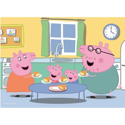 Prasečí slečna Peppa se svou rodinkou zrovna svačí dort. A jeden kousek ještě zbývá! Na ten třeba pozvou vašeho malého stavitele, až se mu podaří poskládat všech 24 dílků...