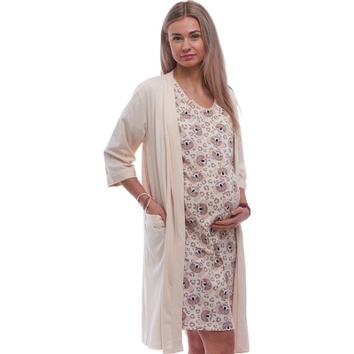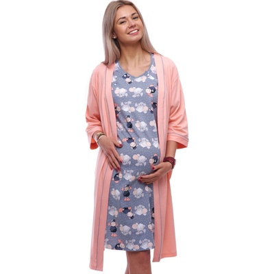 Pohodlný a krásně sladěný komplet na spaní, ideální pro období těhotenství, kojení i do porodnice. Košilka v šedé barvě s jemnými bílými tečkami je zdobená roztomilým motivem...