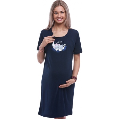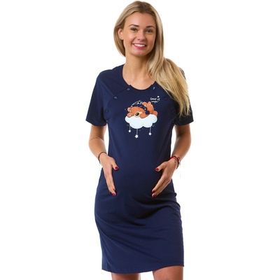Praktická těhotenská a kojicí košilka z měkké bavlny v tmavě modré barvě s motivem spícího medvídka na obláčku. Ideální do porodnice i pro domácí kojení.