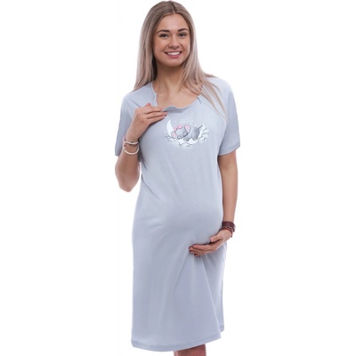 Šedomodrá těhotenská a kojící košile má dvojité propínání na zipy - spící slůňátko na obláčku – od ramene až k podpaží – je ideální volbou do porodnice i pro pohodlné domácí...