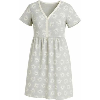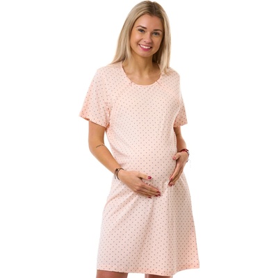 Růžová těhotenská a kojicí košilka z měkké bavlny s celoplošným vzorem šedých puntíků. Má krátký rukáv, délku nad kolena a zipy od ramene pro snadné kojení. Skvělá volba do...
