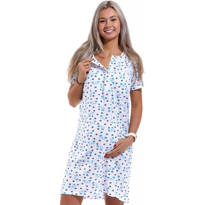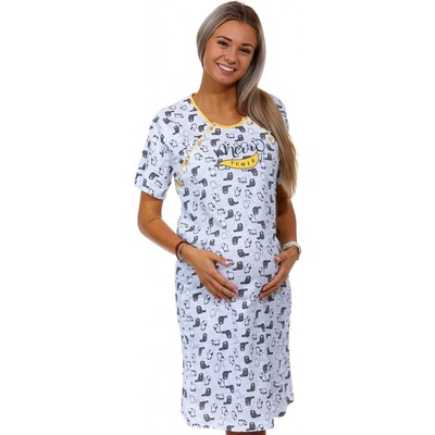 Bílá modrá kojící a těhotenská košilka, kočičky a tlapičky Kojící a těhotenská noční košilka Nádherný materiál a zpracování Jemná poddajná bavlna Hluboký propínací výstřih...