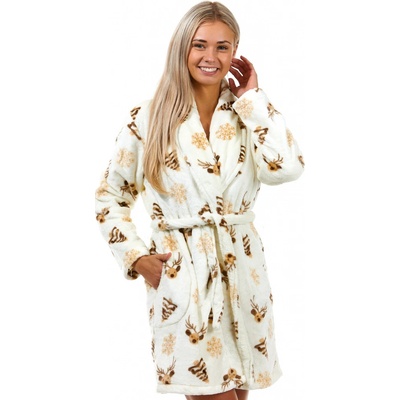 Smetanový, béžový i hnědý huňatý župan s límcem pro ženy s jeleny, sněhové vločky a Vánoce Ňuňavý župan z hřejivého nádherného materiálu Župan s širokým límcem a dokonalým...