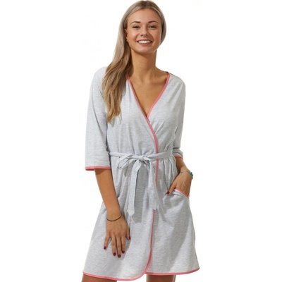 Šedý a růžově lemovaný lehký župan do porodnice na kojení 5XL-7XL Župan do porodnice z nádherné příjemné bavlny je dokonalou variantou ideální výbavy do porodnice. Župan...