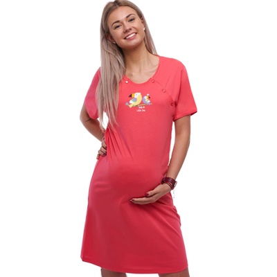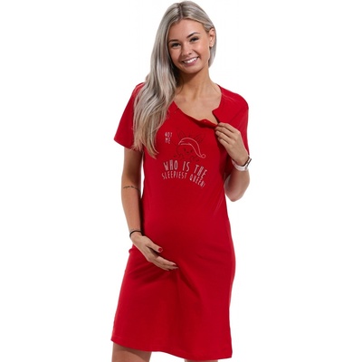 Pohodlná těhotenská a kojicí noční košile z měkké 100% bavlny v živé červené barvě. Ideální pro období těhotenství, do porodnice i pro každodenní kojení. Košile má krátký rukáv...
