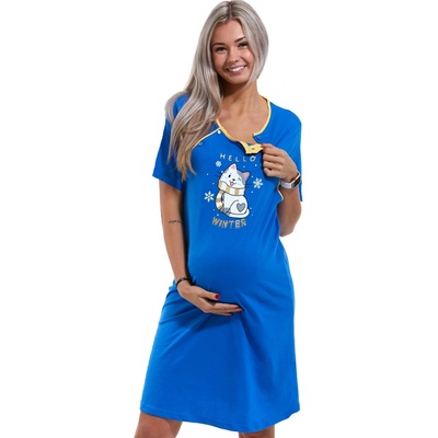 Modrá kojící a těhotenská košilka, Zimní kočička Kojící i těhotenská košilka z jemné bavlny, pro pečující maminky ideální do porodnice Dokonalý střih a nádherný design,...