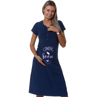 Modrá kojící a těhotenská košilka Coming soon Kojící i těhotenská bavlněná košilka, pro pečující maminky ideální do porodnice Dokonalý střih a nádherný design, košilka je...
