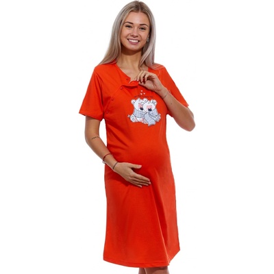 Tmavě oranžová těhotenská a kojící košile TULÍCÍ SE MEDVÍDCI Kojící košilka s krátkým rukávem Volný střih pro zvětšující se prsa po porodu Délka nad kolena Poddajná bavlna,...