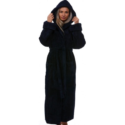 Tmavě modrý huňatý župan pro ženy na kojení do porodnice Extra dlouhý dámský župan s kapucí z příjemně extra teplého chlupatého materiálu, který vám zajistí maximum komfortu...