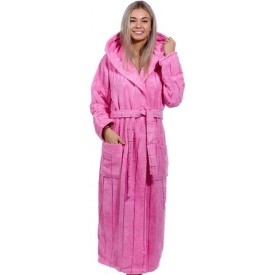 Růžový pruhovaný dlouhý župan do porodnice na kojení z extra foroté Župan na kojení je velice kvalitní z jemné teplé silné froté 100% bavlny s hlubokou kapucí, který má dvě...