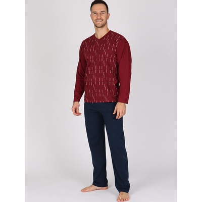 Pánské pyžamo 485/52 značky REGINA nabízí elegantní vzhled, komfortní střih a příjemný bavlněný materiál pro dokonalý odpočinek každou noc. - Véčkový výstřih - Dlouhý rukáv...