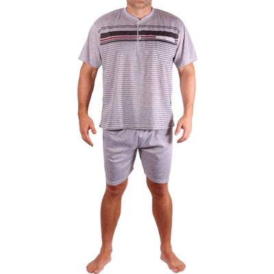 Jiří je dvoudílné pánské pyžamo s krátkými rukávy a krátkými nohavicemi. V tradičním provedení pro pohodové muže. Horní díl - volné tričko - má zapínání na knoflíky a funkční...