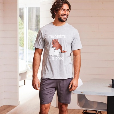 Dvoudílné pánské pyžamo šedé barvy, ušité z kombinace bavlny a viskózy. Z materiálů, které vynikají dobrou prodyšností a jemností.Horní díl tvoří klasické triko s krátkými...