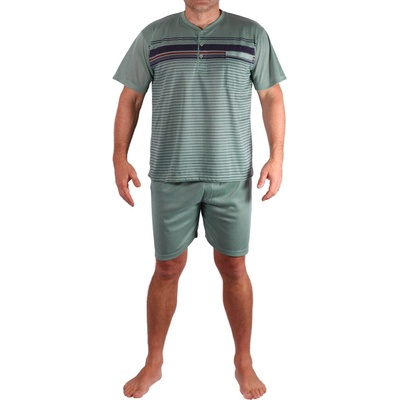 Jiří je dvoudílné pánské pyžamo s krátkými rukávy a krátkými nohavicemi. V tradičním provedení pro pohodové muže. Horní díl - volné tričko - má zapínání na knoflíky a funkční...
