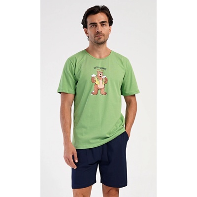 Pánské bavlněné šortkové pyžamo Beer always. Pánské pyžamo se skládá z trička s krátkým rukávem a krátkých šortkových kalhot. Na jednobarevném tričku je obrázek medvěda s pivem...