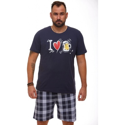Pánské pyžamo šortky I love beer. Pyžamo se skládá z trička s krátkým rukávem a krátkých šortkových kalhot. Na tričku je obrázek skládající se z nápisu I, srdíčka a půllitru...