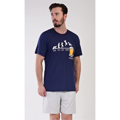 Pánské pyžamo šortky Filip. Pánské pyžamo se skládá z trička s krátkým rukávem a krátkých šortkových kalhot. Jednobarevné tričko s kulatým výstřihem je zdobeno veselým obrázkem...