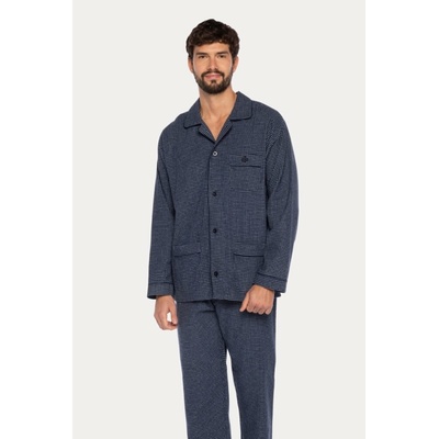 Pánské pyžamo v oblíbeném bavlněném provedení, které díky dlouhým rukávům a nohavicím snadno najde uplatnění také v chladnějším období. Osvědčená kombinace klasického vzhledu a...