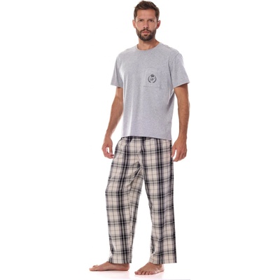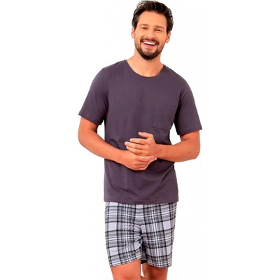 Pánské bavlněné pyžamo s krátkým rukávem a kostkovanými kraťasy. Jednobarevné tričko s krátkým rukávem a malou kapsou na prsou. Kraťasy jsou šité bez kapes a mají volnou gumu v...