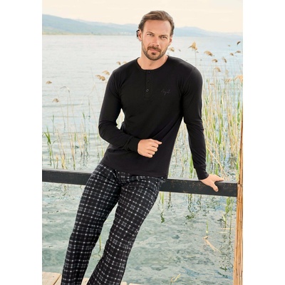 Černé i šedě kárované luxusní jemné pyžamo pro muže s knoflíčky Pyžamo pro muže z kvalitní bavlny úžasného modalu a elastanu, které zajistí jemnost i pružnost u trika Dlouhé...