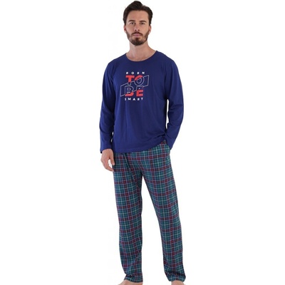 Modré, zelené i červeně kárované pyžamo pro plnoštíhlé muže Zrozený být chytrý Pyžamo pro muže z kvalitní bavlny Kalhoty mají v pase všitou plochou gumu, která je zárukou...