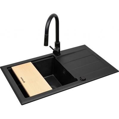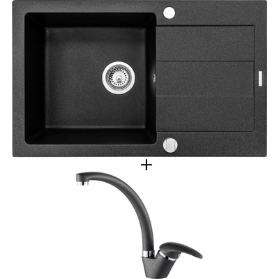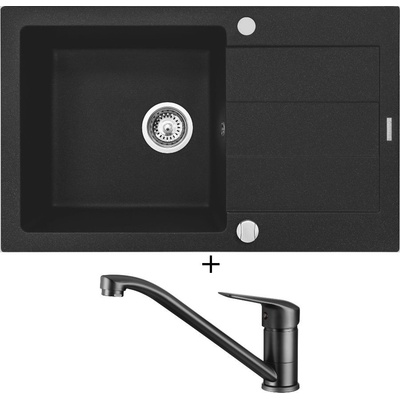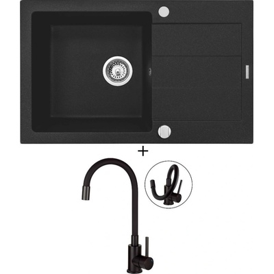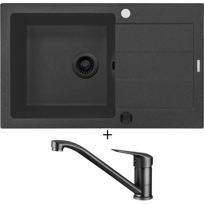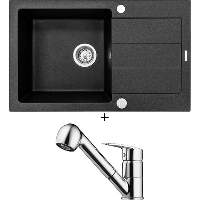 Dřez Sparta (78x48) doplněný novou baterií Idea s vytahovací výpustí - všechny prvky v černé barvě. 1. Dřez Sparta Plus Lux - univerzální, oboustranný dřez - typ armatury:...