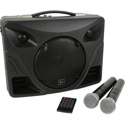 Mobilní 8" zvukový systém s dobíjecí baterií, MP3 přehrávačem, Bluetooth přijímačem a dvojicí ručních bezdrátových VHF mikrofonů. Výkon systému 50W, kompaktní provedení,...