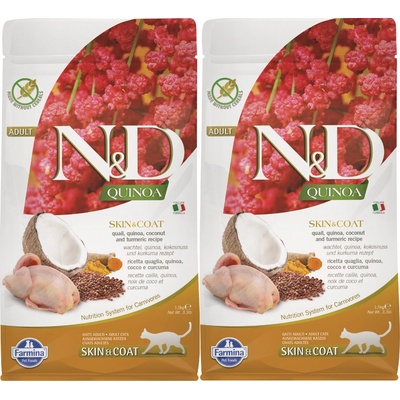 N&D Quinoa CAT Skin & Coat Herring & Coconut 1,5kg N&D QUINOA SKIN & COAT - Vysoce stravitelné krmivo pro kočky podporující zdraví a eliminující riziko vzniku potravní...