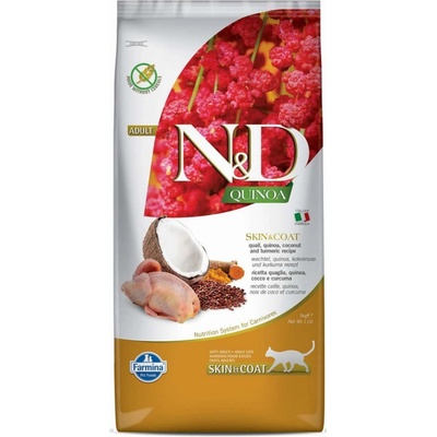 N&D Quinoa CAT Skin & Coat Quail & Coconut 5kg N&D QUINOA SKIN & COAT - Vysoce stravitelné krmivo pro kočky podporující zdraví a eliminující riziko vzniku potravní alergie....