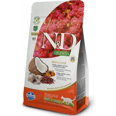 N&D Quinoa CAT Skin & Coat Herring & Coconut 1,5kg N&D QUINOA SKIN & COAT - Vysoce stravitelné krmivo pro kočky podporující zdraví a eliminující riziko vzniku potravní...