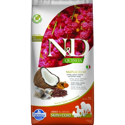 N&D Quinoa CAT Skin & Coat Herring & Coconut 5kg N&D QUINOA SKIN & COAT - Vysoce stravitelné krmivo pro kočky podporující zdraví a eliminující riziko vzniku potravní alergie....
