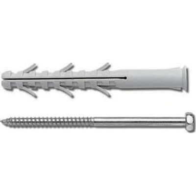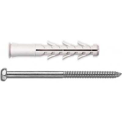 Nylonové hmoždinky určené pro kotvení do betonu, cihel, tvárnic apod. Sada obsahuje vrut se šestihrannou hlavou a hmoždinku. Vyrobena je z vysoce kvalitního materiálu Polyamid (Nylon 6).