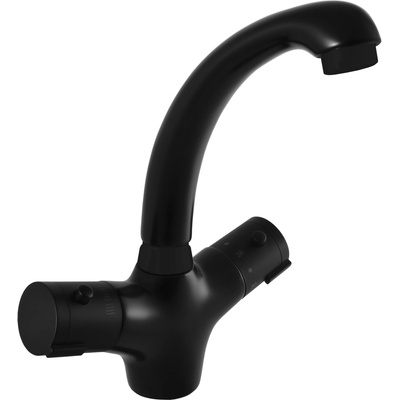 Vodovodní baterie umyvadlová stojánková termostatická bez otvírání odpadu. - tato baterie je vybavena termostatickou kartuší KA4014 a vrškem KA0501 - perlátor od firmy Neoperl MA0001CMAT - provedení černá matná Typ připojení flexi hadic: - "0" - připojení flexi...