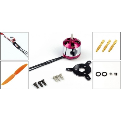 Combo set střídavého elektromotoru s rotačním pláštěm s regulátorem 80A pro modely letadel: větroň 2400g, trenér 2300g, akro 2000g, 3D 1500g, KV950 ot./min na V, napájení Lixx...