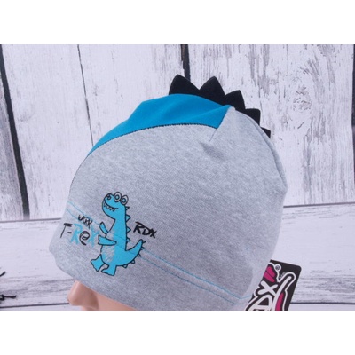 Čepice zn. RDX ... barva ŠEDÁ / SV.MODRÁ, atraktivní dinosauří motiv - kvalitní český výrobek s atestem, výrobce je držitelem licence "česká kvalita" - čepice je 1vrstvá -...