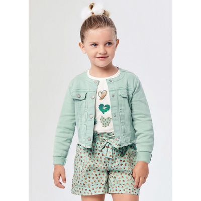 Mayoral dívčí riflová bunda s límečkem a mašličkami. Bunda je z velmi příjemné, odlehčené rifloviny. Střih bundy je volnější, zapínání na cvoky, na přední straně jsou 2 funkční...