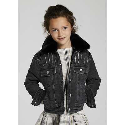 Mayoral dívčí riflová bunda s kožešinovým límcem a kamínky. Bunda je podšita heboučkým fleecem, kožešinový límec je odepínací. Na přední straně jsou kamínky a 2 funkční kapsy....