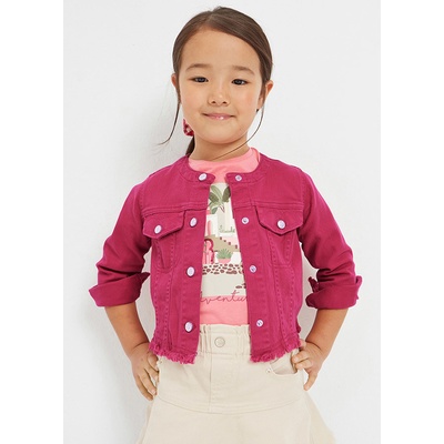 Klasika, která nikdy neomrzí, to je džíska značky Mayoral, nyní v růžové barvě s mírně pudrovým nádechem. bunda z pružné džínoviny se zapínáním na knoflíky vytřepené konce jsou...