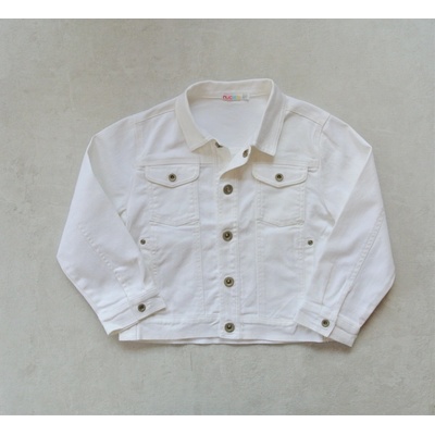 Dívčí riflová bunda do pasu se zapínáním na druky. Všechny kapsy jsou funkční. Krásně sedí a je ideální na letní šaty. Složení: 98% bavlna, 2% elastan Barva: bílá