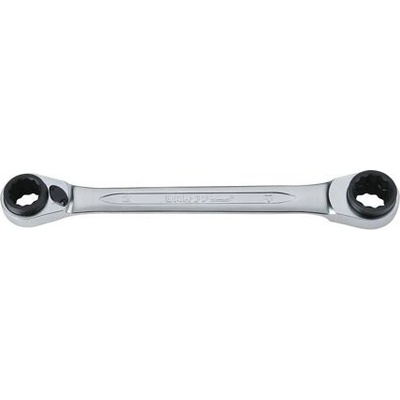 Ráčnový očkový klíč v metrických rozměrech Materiál: Vysoce pevnostní legovaná ocel 4 velikosti v 1 klíči přepínací páčka směru záběru ráčny, 5° úhel záběru profil...