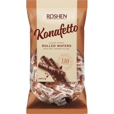 Roshen Konafetto Vaflové trubičky plněné mléčným mlékem v čokoládě 1 kg Představujeme vám jedinečné bonbóny Roshen Konafetto ve formě trubiček v polevě s mléčnou náplní –...