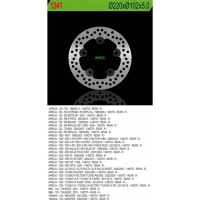 Brzdový kotouč NG zadní APRILIA 1000 RSV Mille R,SL,SP (98-03) rok 98-03Rozměr: D220 d102 t5Stránky výrobce: http://www.ngbrakedisc.com/