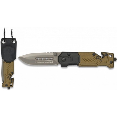 Menší zavírací záchranářský nůž od firmy RUI Tactical v černém celokovovém provedení. Čepel má tvar typu tanto, je vyrobena z nerezové oceli 440 s titanovou povrchovou vrstvou a...