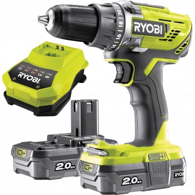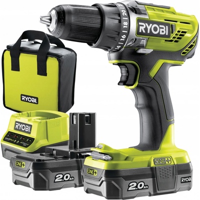 Ryobi R18DD3-220S ONE+ aku vrtací šroubovák 2x2.0Ah Aku vrtací šroubovák bez příklepu pro šroubování a vrtání otvorů do dřeva, kovu a umělé hmoty. 24 stupňů nastavení točivého momentu celokovové 13mm ráčnové sklíčidlo pro pevné uchopení 2 rychlostní stupně pro vrtání a...